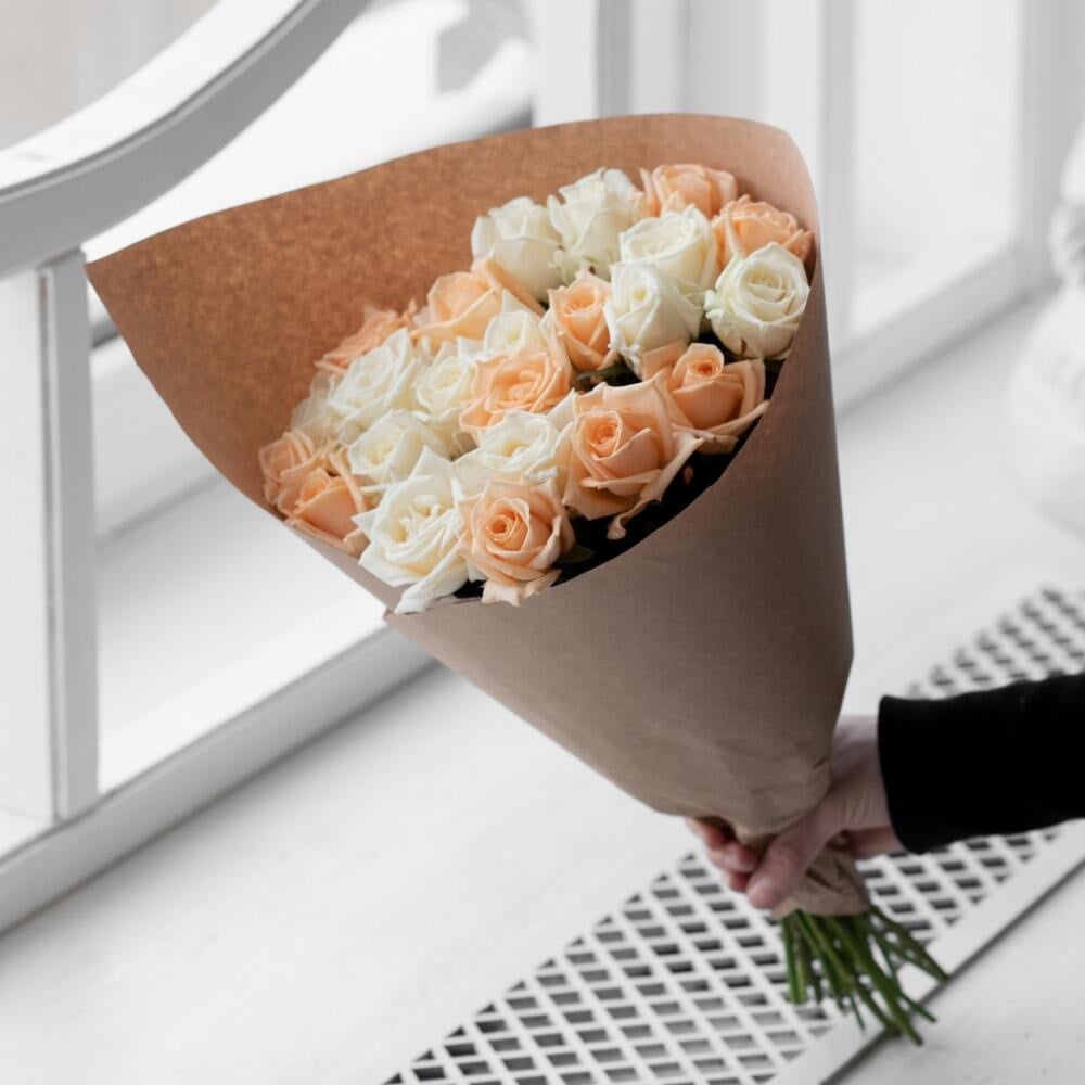 Букет из персиковых и белых роз