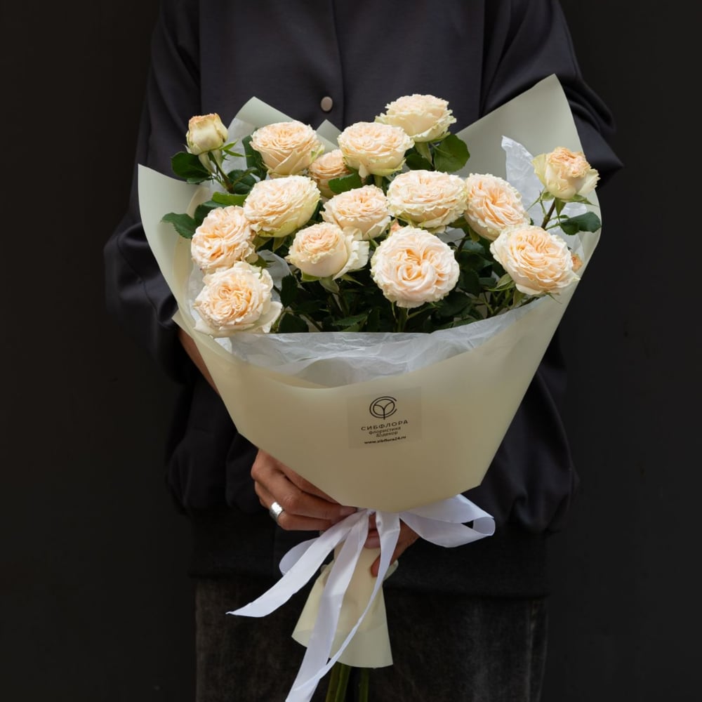 Монобукет Darlington - когда нежность становится искусством Встречайте — букет, который мог бы стать главным героем романтического фильма! Представьте себе: нежные кремовые кустовые розы сорта Summer Rouse кружатся в изящном танце, словно балерины на сцене. Их маленькие соцветия — настоящие мастера воздушного балета, создающие композицию, от которой невозможно оторвать взгляд. Каждая веточка этих роз — как маленькое солнышко, излучающее не только свет, но и чистую, искреннюю нежность. Они настолько утонченны, что кажется, будто их лепили из облаков, а потом случайно окрасили в кремовый цвет. Этот букет — настоящий мастер выражения чувств. Он говорит о любви без слов, шепчет о нежности без звуков и дарит тепло даже в самый пасмурный день. Если вы ищете способ сказать «я ценю твою утонченность» или «ты делаешь мой мир светлее» — этот букет уже ждёт, чтобы передать ваши чувства. И да, он настолько деликатен, что даже ваша бабушка одобрит его скромную роскошь! Размеры: высота до 55 см., диаметр до 30 см. ⠀ Состав: роза кустовая Самерроуз - 3 шт., упаковка, ленты