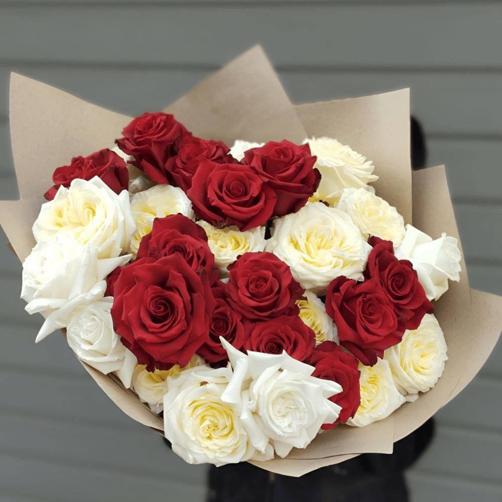 БЕСПЛАТНАЯ ДОСТАВКА Роскошный букет ГЛОРИЯ, собранный из бордовых роз и ароматных пионовидных роз сорта «Канделайт» оттенка топленого молока, поражает своей элегантностью и утонченностью. Мастера Центра Флористики Красноярск искусно комбинируют насыщенные бордовые цветы с мягкими и нежными пионовидными розами, создавая контраст, который притягивает взгляды. Бордовые розы, с их глубоким, насыщенным цветом, символизируют страсть и романтику, а их бархатные лепестки добавляют букету роскошную текстуру. Они служат идеальной основой для букета, внося в него яркость и стиль. В сочетании с ароматными пионовидными розами сорта «Канделайт», оттенка топленого молока с легкими персиковыми нюансами, букет наполняется мягкостью и зимой теплом. ⠀ Такой букет будет великолепным центром внимания как на романтическом ужине, так и на торжественном мероприятии. Он способен создать атмосферу праздника и изысканности, внося в каждый момент нотку роскоши. Подарите этот букет любимому человеку, и вы сможете выразить свои самые искренние чувства и сделать любой день поистине особенным. ⠀ Состав: розы пионовидные (60) - 31 шт., ленты, упаковка