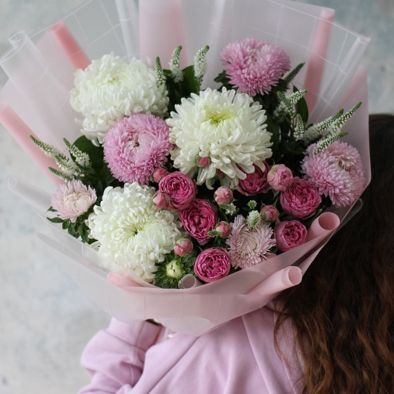 Букет из пионовидных роз и хризантем