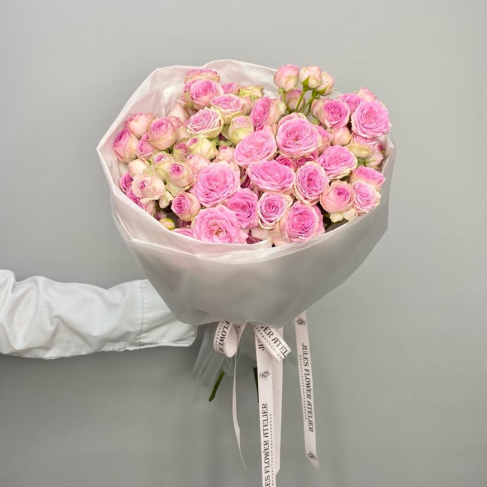 Нежные розовые пионовидные кустовые розы в упаковке. Волшебный комплимент 😍 И, конечно же, в вашем заказе вы найдете не только этот неповторимый букет, но и нашу фирменную открытку, которая добавит особую нотку тепла, инструкцию по заботе о цветах, чтобы сохранить их свежесть, и даже подкормку для цветов, чтобы они долго радовали вас своей красотой🌺 Также при оплате букета- в корзине- вам будут доступны дополнительные товары на ваш выбор, чтобы вы могли еще ярче передать свои чувства 🥰