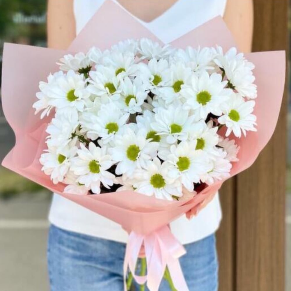 Этот изысканный монобукет состоит из семи ромашковых хризантем, украшенных двумя дизайнерскими упаковками и завершенных лентой из атласа. Утонченность и грацию этого букета подчеркивают яркие лепестки цветов, слегка покачивающиеся на ветру. Этот букет станет замечательным подарком для любого случая, принося радость и теплоту в сердца ваших близких