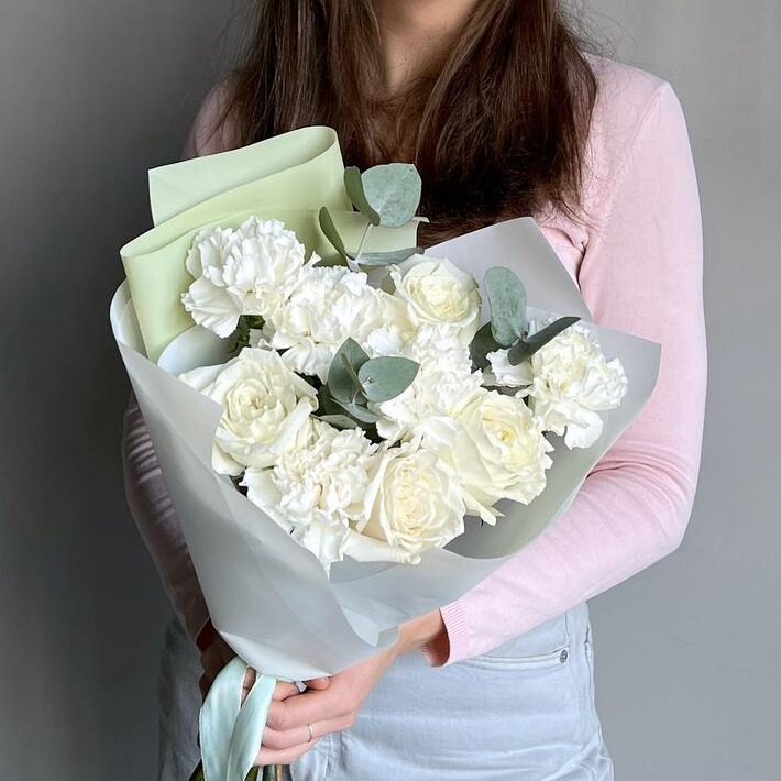 Букет из роз, эвкалипта и гвоздики