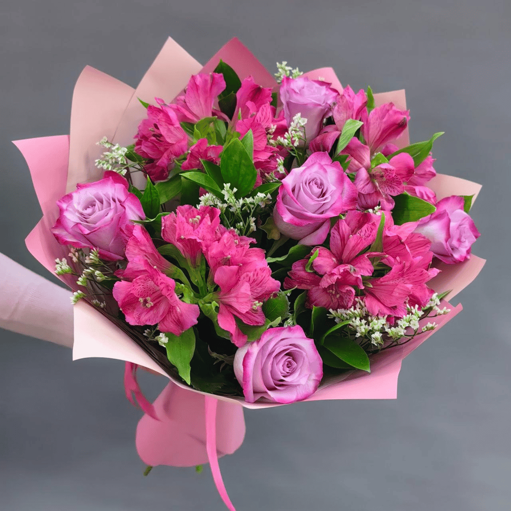 Букет из роз и альстромерий