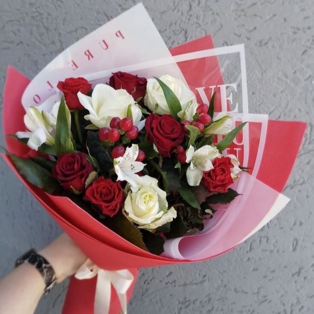 Букет из роз и альстромерий Контраст
