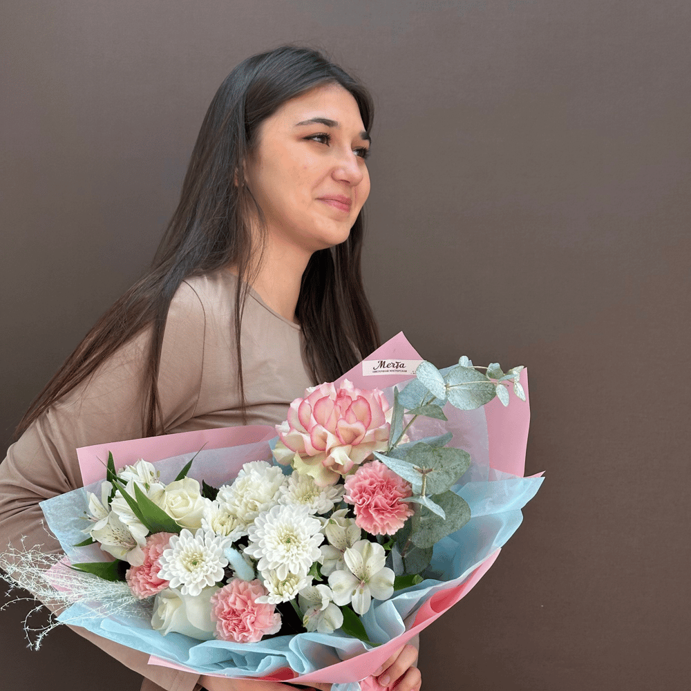 Стильный букет в нежной цветовой гамме из эквадорских роз и алстромерий в корейской пленке. Наши профессиональные флористы соберут его из самых свежих цветов. Букет станет идеальным подарком для любимой женщины, дочки или мамы, на День рождения, юбилей, свадьбу и другие торжественные мероприятия. В подарок 🎁 от нас получатею отправляем инструкцию по уходу, открытку с вашими пожеланиями и средство Кризал( для стоикости цветов). Приятных покупок😊 С уважением, ваша цветочная мастерская Мечта🌸