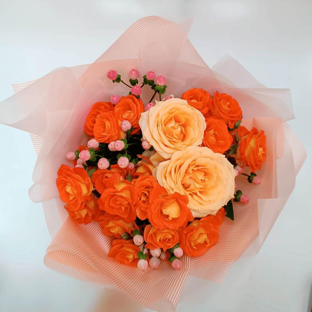 Букет, состоящий из розы, кустовой розы и гиперикума прекрасно подойдет для создания романтической атмосферы. Каждая роза символизирует любовь и страсть, а гиперикум добавляет нежности и оригинальности. Упакованный в стильную и элегантную упаковку, этот букет станет замечательным подарком для важного события или просто для того, чтобы порадовать близкого человека. Он будет прекрасным украшением интерьера и ярким символом любви и восхищения.