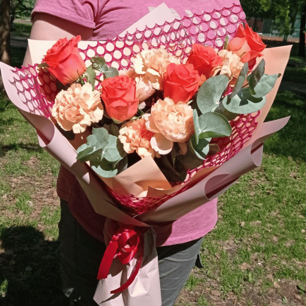 Букет из роз и гвоздики