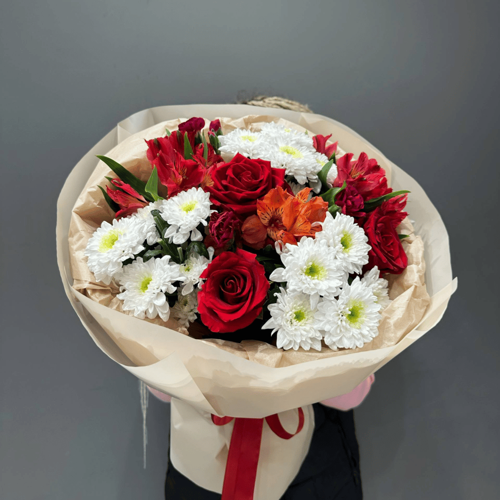 Букет из роз, кустовой хризантемы