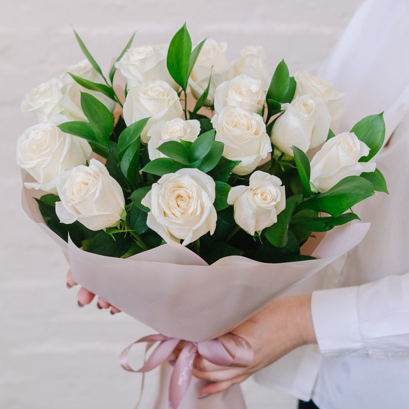 Букет из роз с зеленью "Белоснежка"