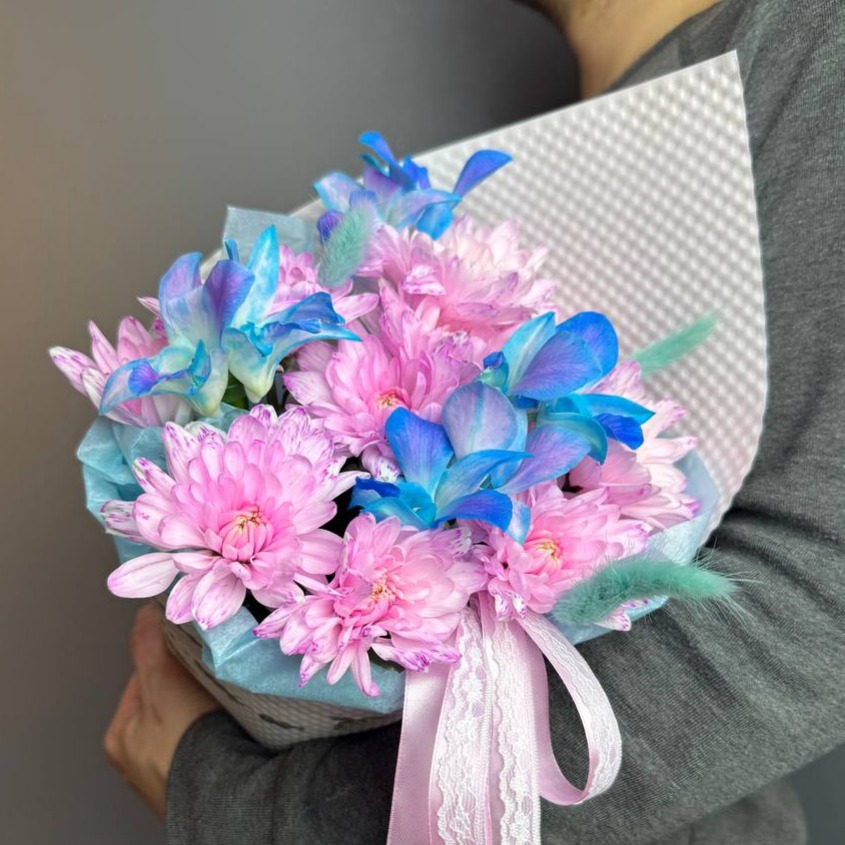 Букет из Розовой Хризантемы и Орхидеи Де