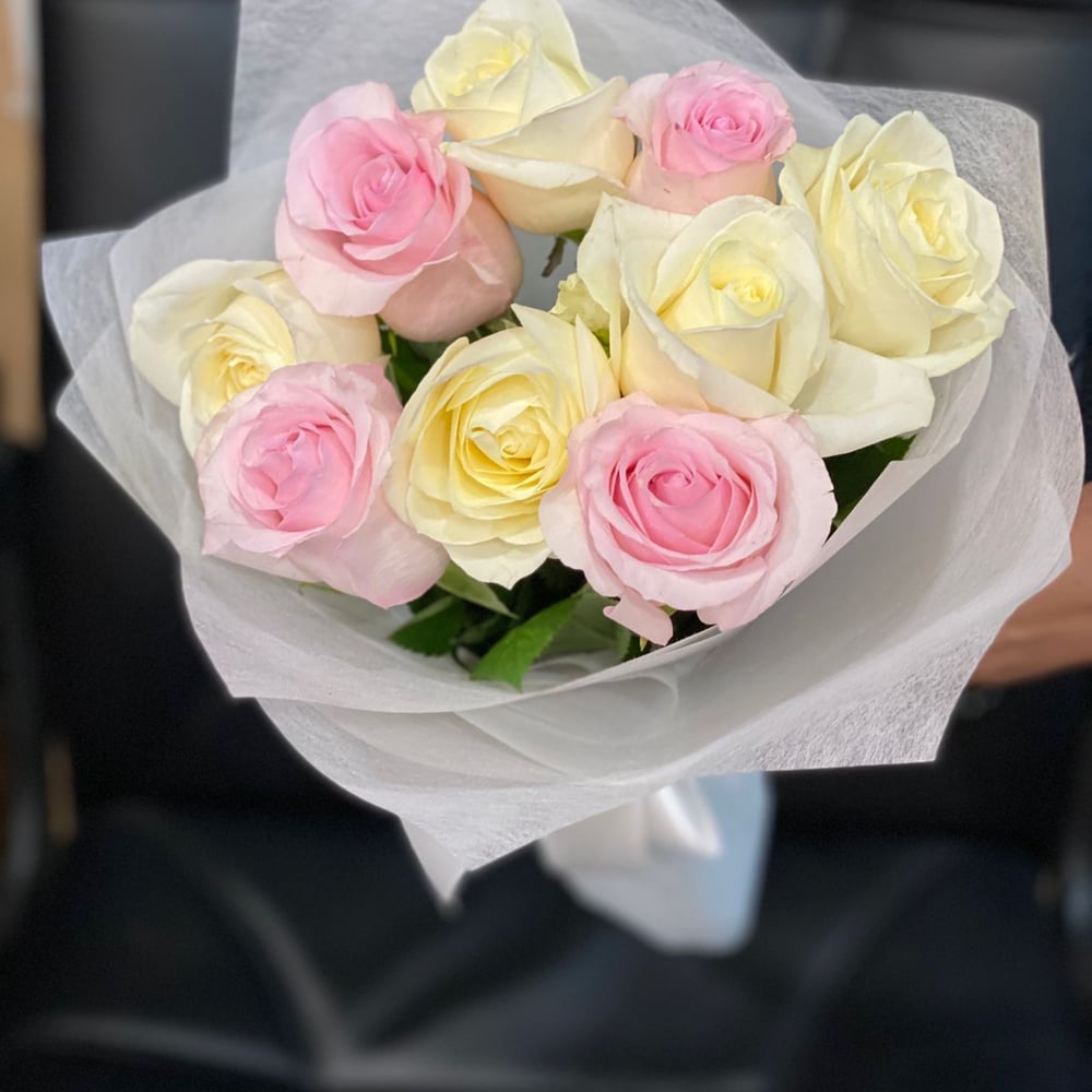 Нежный букетик из белых и розовых розочек будет долго радовать получателя