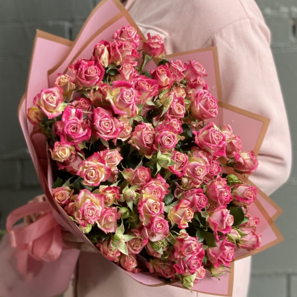 Букет из розовых кустовых роз