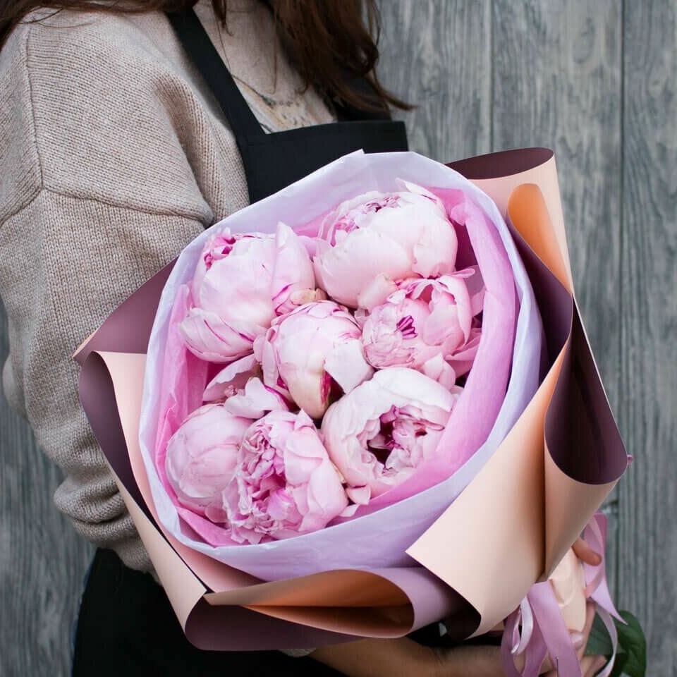 Букет из розовых пионов 7 шт.