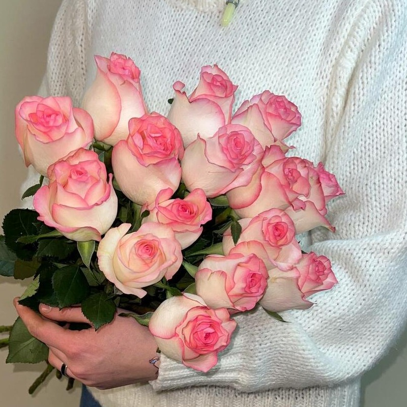 Букет из нежных розово белых роз, с прекрасной вазостойкостью. Прекрасный подарок на день рождения, юбилей, свадьбу или просто для души. Цветы для любимой девушки, мамы, подруги, коллеги