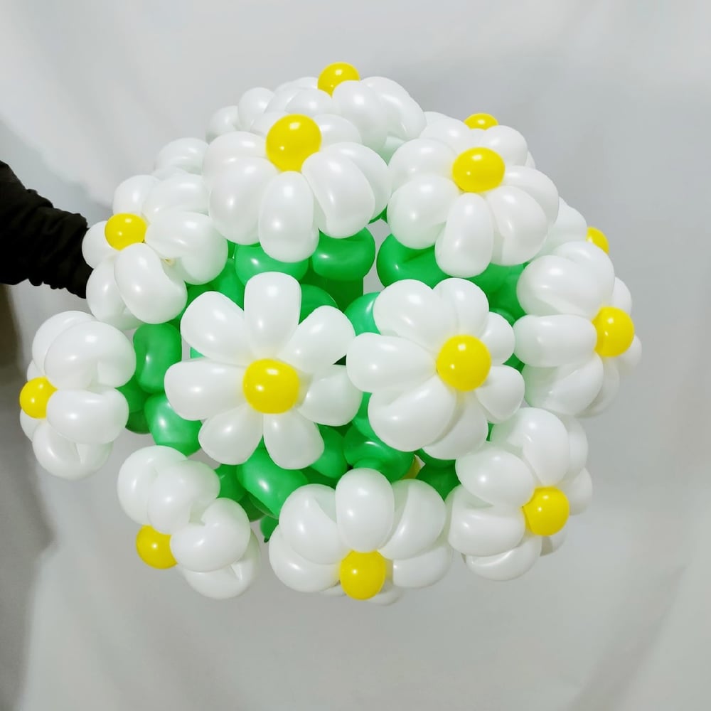 Букет Ромашки 15 шт Выполнен из латексных воздушных шаров. большой, красивый и необычный. Такой букет всегда привлекает к себе внимание и запоминается на долго.