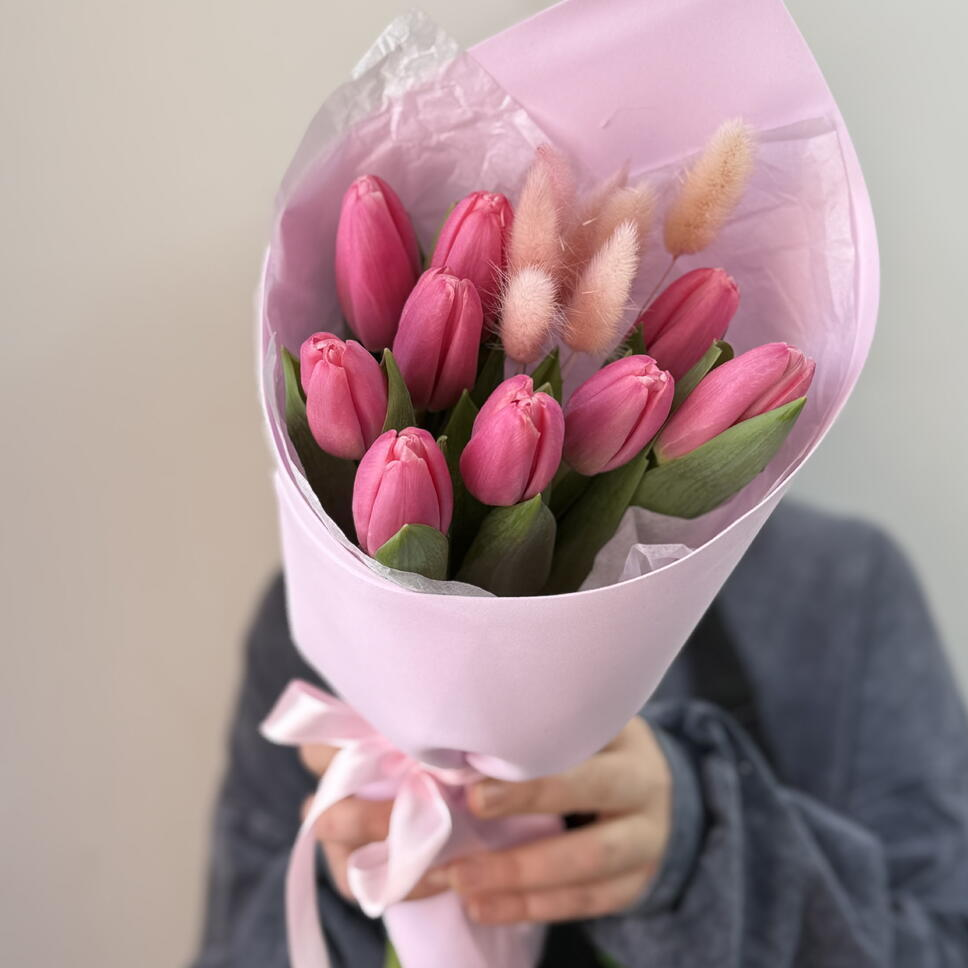 Букет из тюльпанов 9 шт. с лагурусом