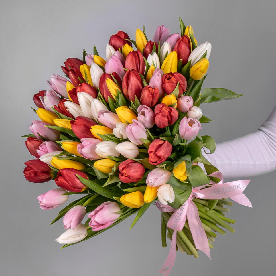 Букет из тюльпанов микс 51 шт