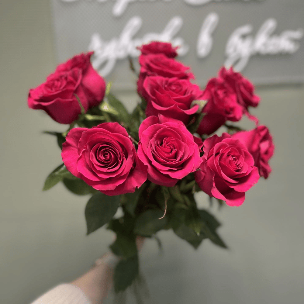 Букет из ярко розовых роз под ленту