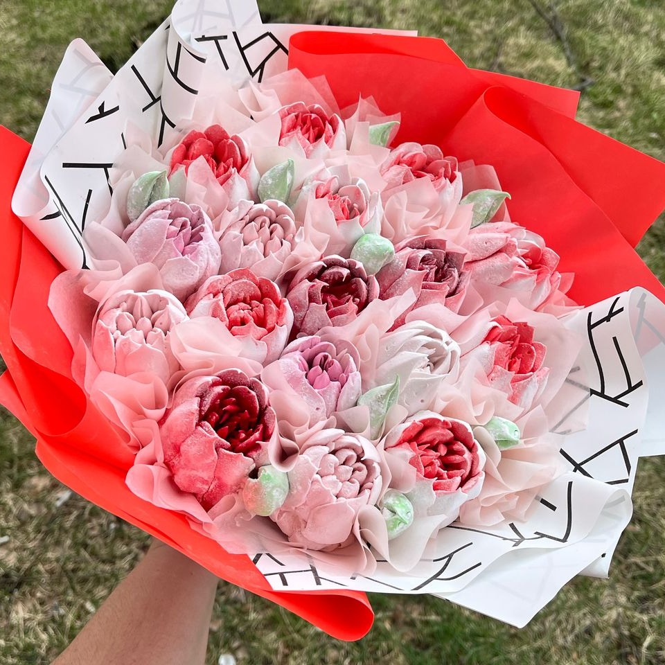 букет из зефирных цветов ручной работы (сахар, белок, агар-агар, яблочный и вишневый джем) срок хранения 14 дней