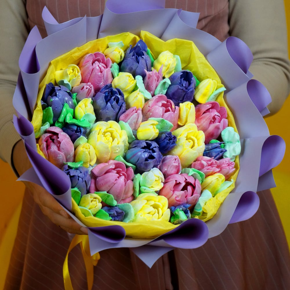Эффектный букет тюльпанов из натурального зефира, приготовленного на яблочном соке, покоряет не только своим внешним видом, но и вкусом. Зефирные цветы - это тренд нашего времени, который сочетает в себе красоту, вкус и практичность! Больше никаких засохших выброшенных цветов. Прекрасный подарок на любой праздник для мамы, сестры, бабушки, жены, любимой подруги. А так же идеальный способ сказать Спасибо!