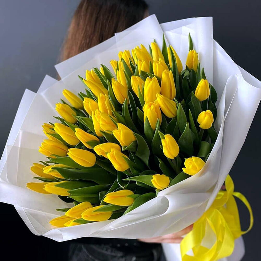 Букет из жёлтых тюльпанов 51 шт