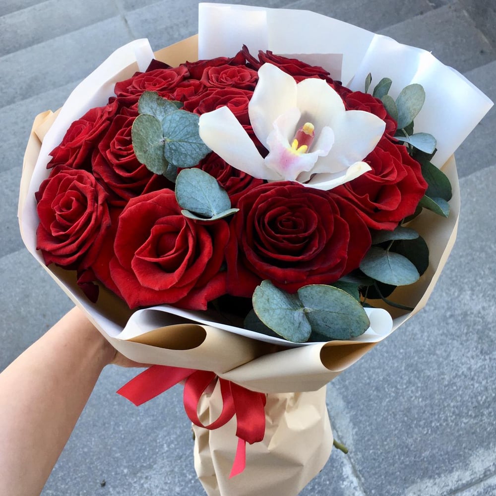Букет "Kiss me" из роз и орхидей