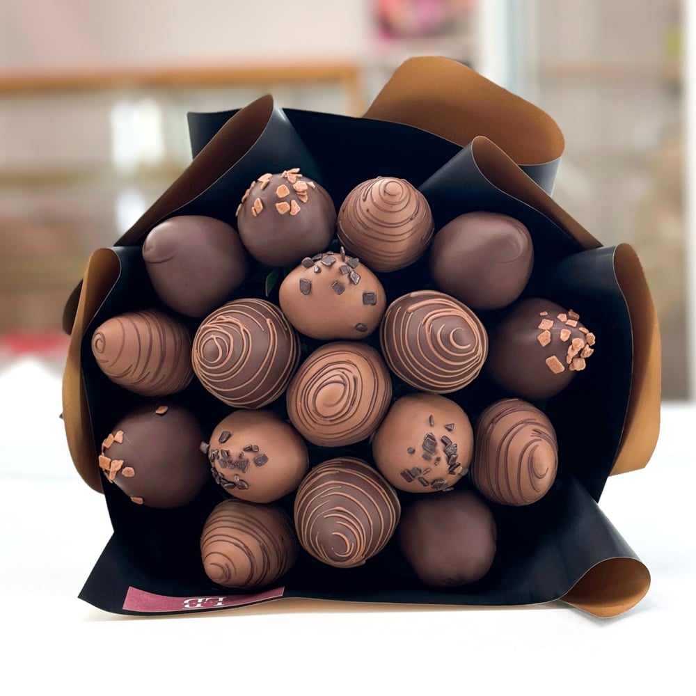 Букет из клубники в шоколаде премиум класса со вкусом коньяка с дизайнерским оформлением