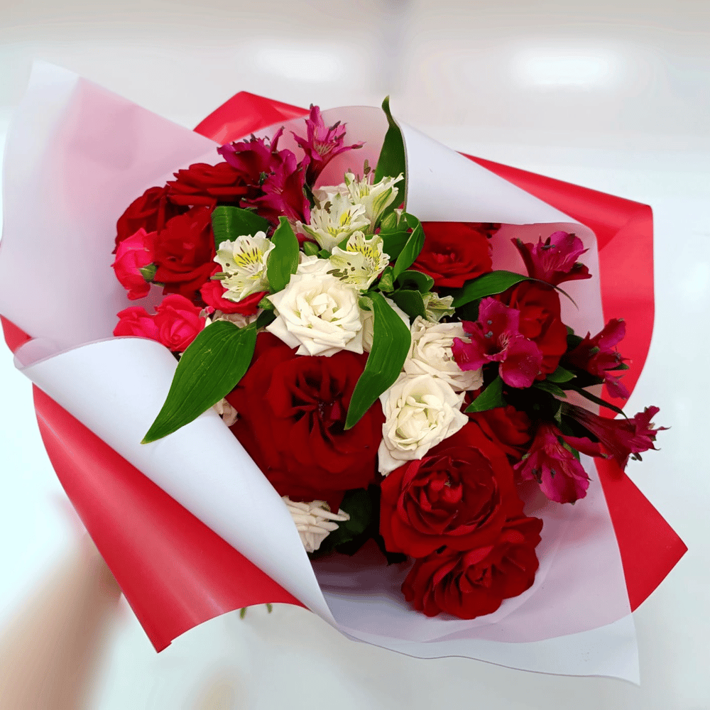 Букет Красное с белым из альстромерий и роз