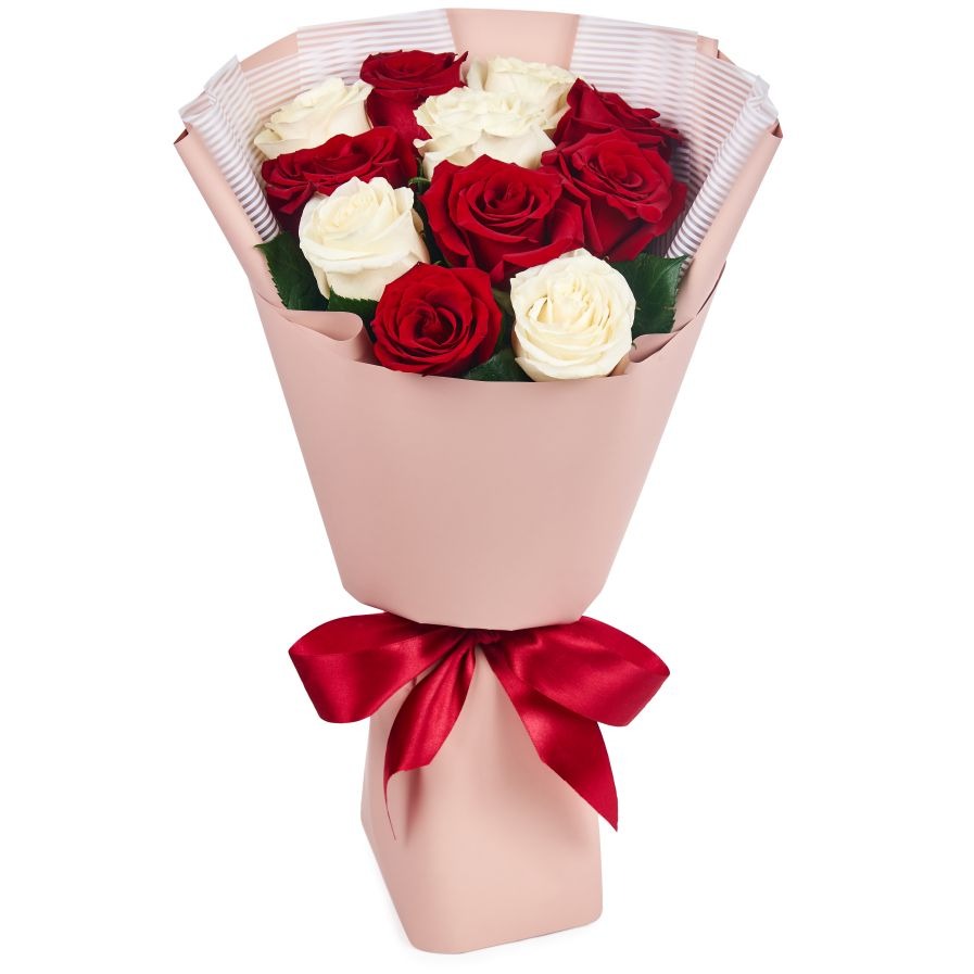 Букет красных и белых роз, 11 шт