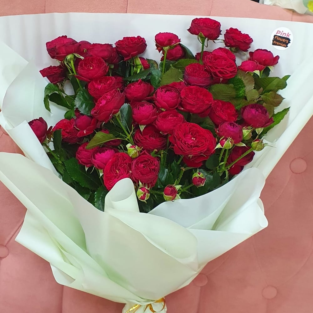 Этот букет из кустовых роз — воплощение утонченной красоты и нежности. Множество маленьких, но пышных цветков создают эффект роскошной композиции, которая привлекает внимание своей элегантной прост...