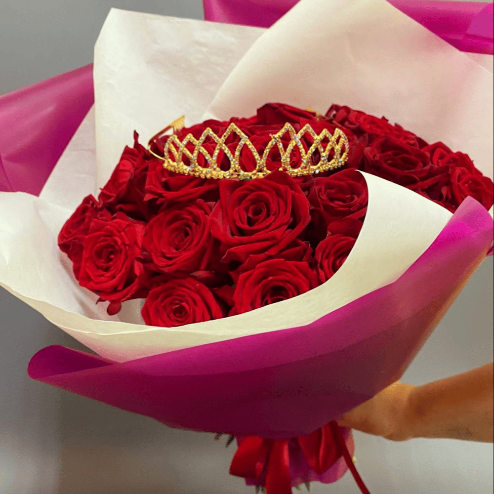 Букет красных роз с короной