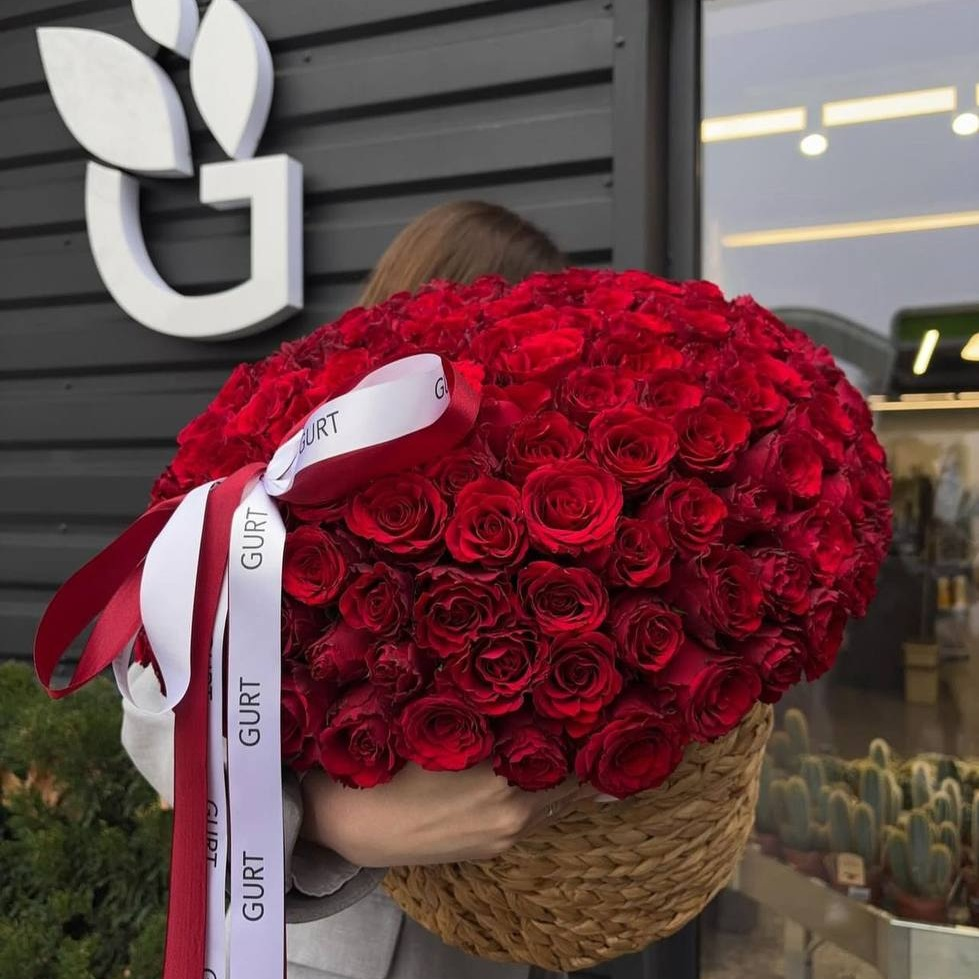 Букет 101 красная роза в корзине