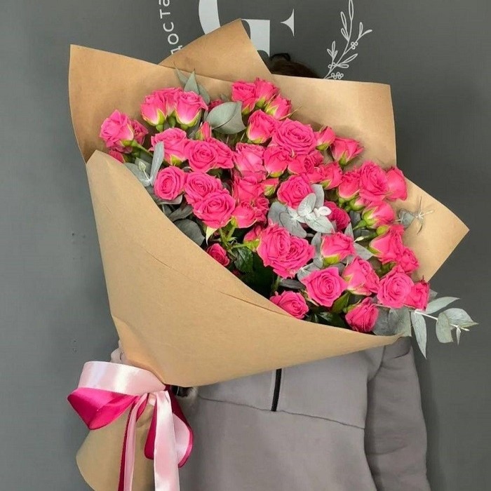 Этот нежный и элегантный букет состоит из красивых кустовых роз. Благодаря упаковке из крафт-бумаги букет приобретает особый шарм и стилистическую завершенность. Он станет прекрасным подарком для любого случая и порадует своего получателя своей красотой и неповторимым ароматом.