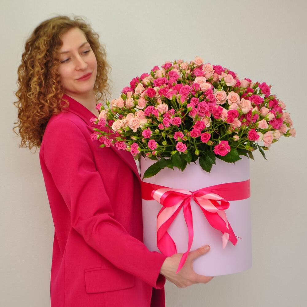 Букет кустовой розы в шляпной коробке