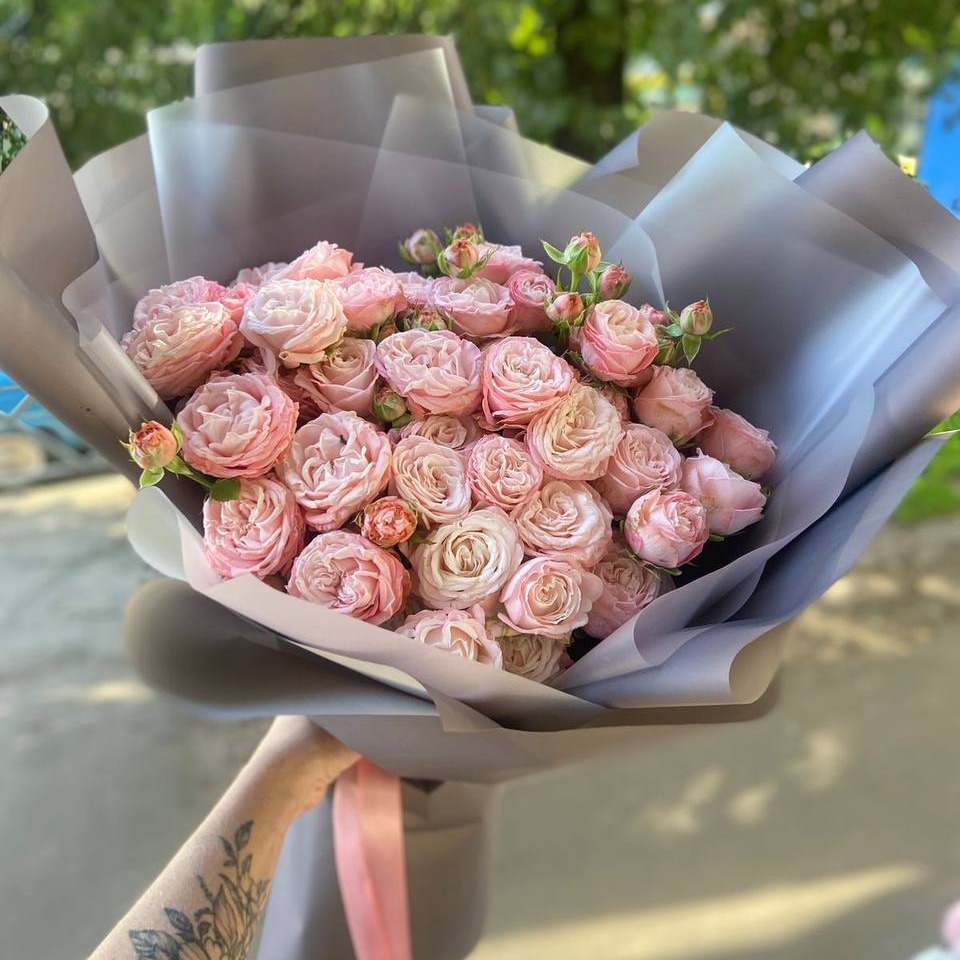 Букет кустовых роз с оформлением