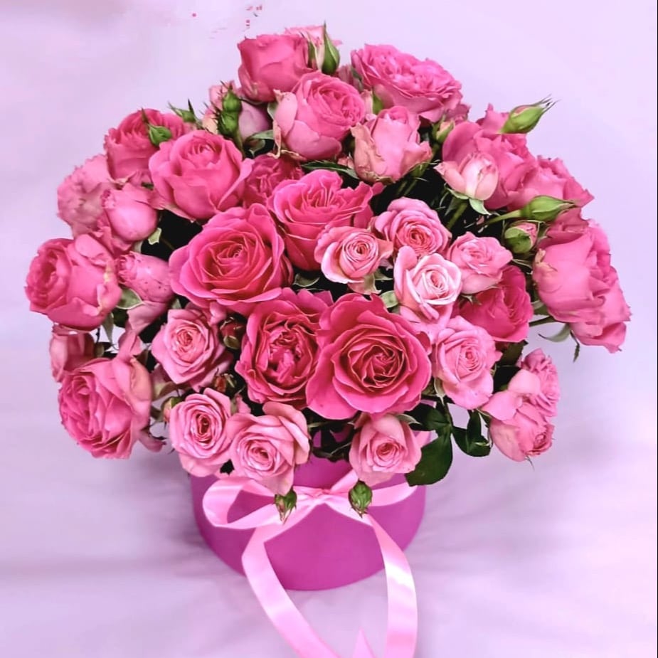 Лучший комплимент или знак внимания для девушки — нежный букет в шляпной коробке.