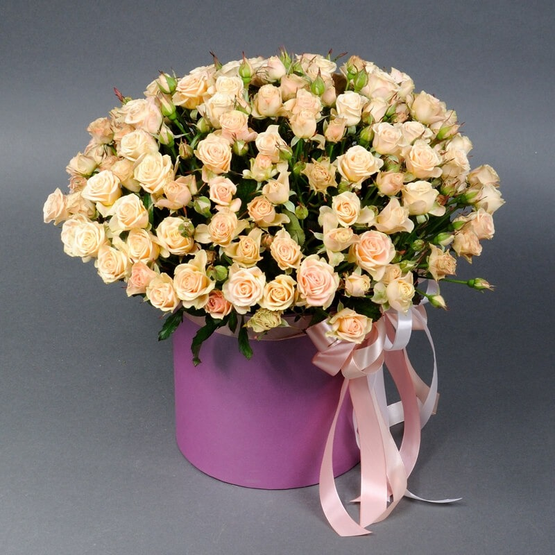 Букет кустовых роз в шляпной коробке