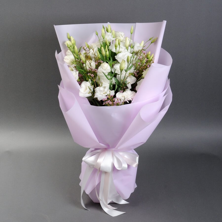 Букет эустом «Лавина» - это стильный и элегантный монобукет, который станет отличным подарком для любого повода. Букет состоит из 15 эустом белого цвета, что придает ему нежный и чистый вид. Эустома - это изысканный и стойкий цветок, который будет радовать получателя своей красотой и ароматом на протяжении долгого времени. Букет эустом «Лавина» подойдет для подарка на любой праздник или событие, будь то 8 Марта, выпускной, День знаний, День матери, день рождения, день свадьбы, День святого Валентина, День семьи, День учителя, рождение ребенка или юбилей.