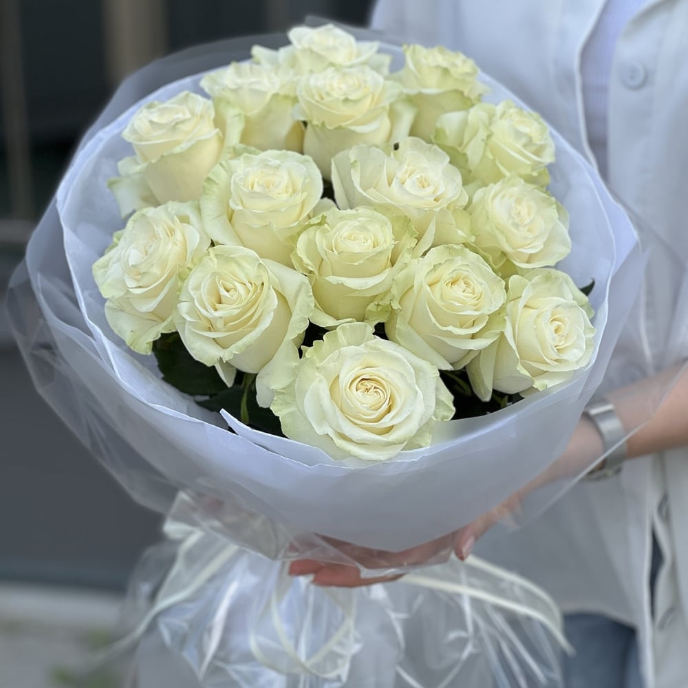 Букет Лайм из 15 белых роз
