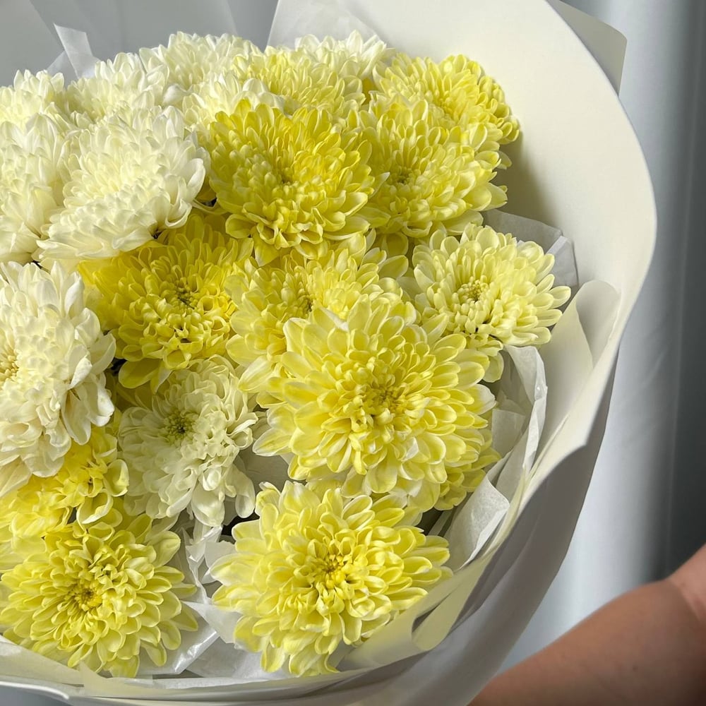Букет лимонных хризантем