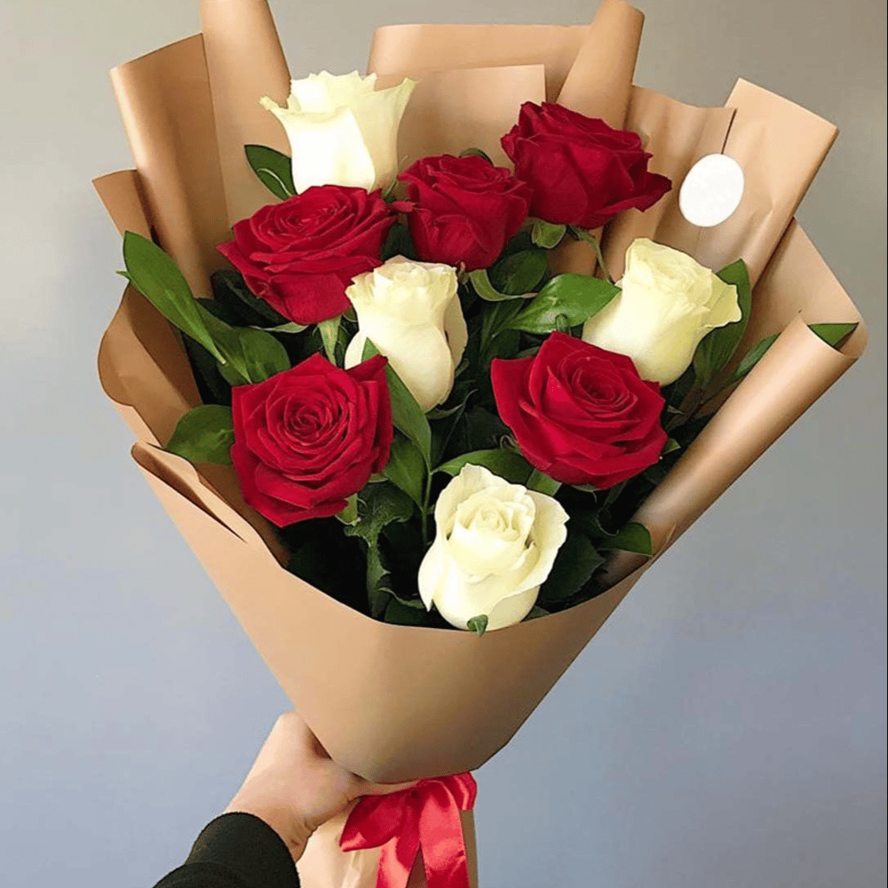 Букет из 4 белых розы 5 красных роз Крафт бумага