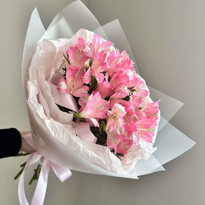 Букет с розовой альстромерией,стойкий и нежный