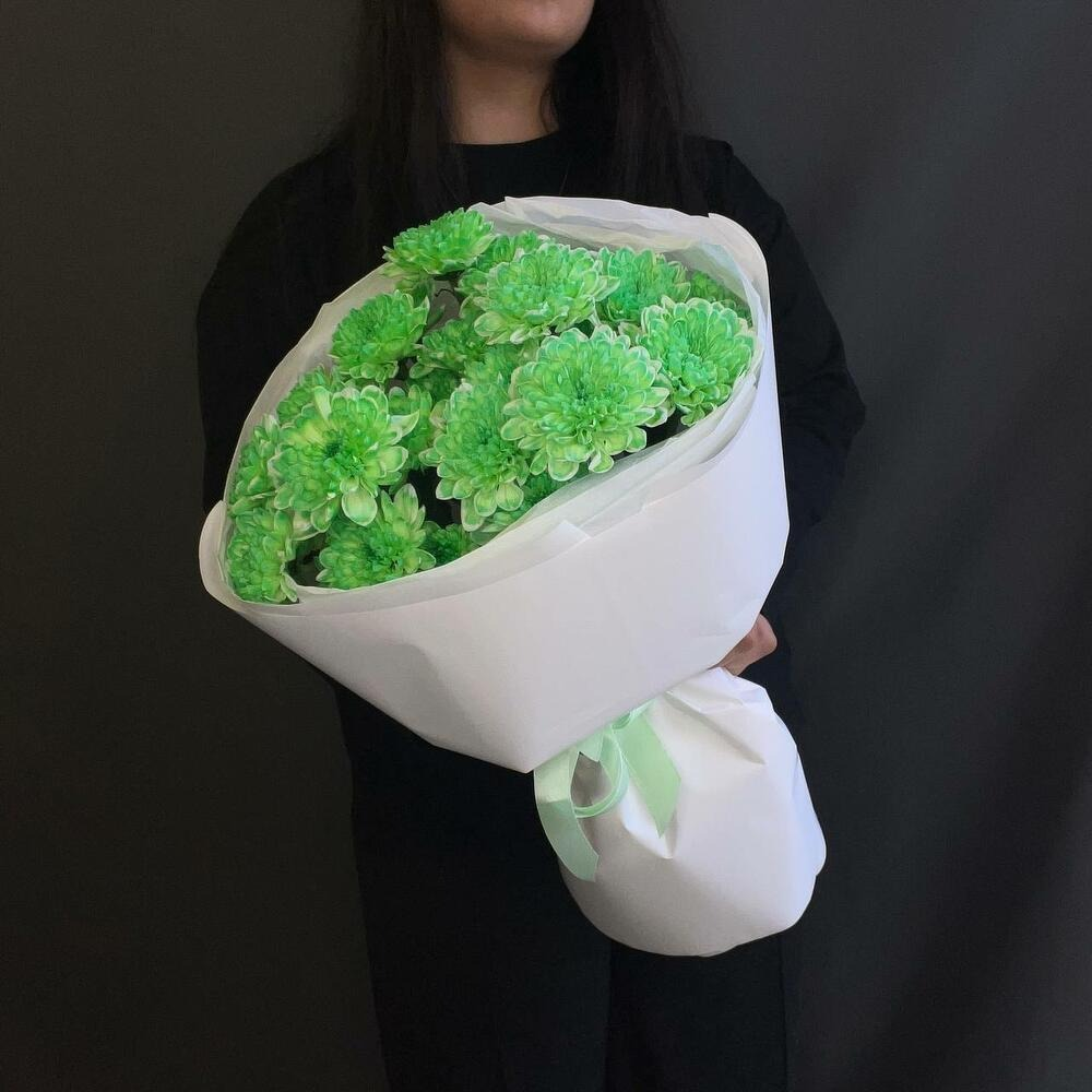 Шикарный букет из кустовой зеленой хризантемы — прекрасный выбор для любого случая. Удобная доставка по городу обеспечит свежесть и красоту каждого бутона.