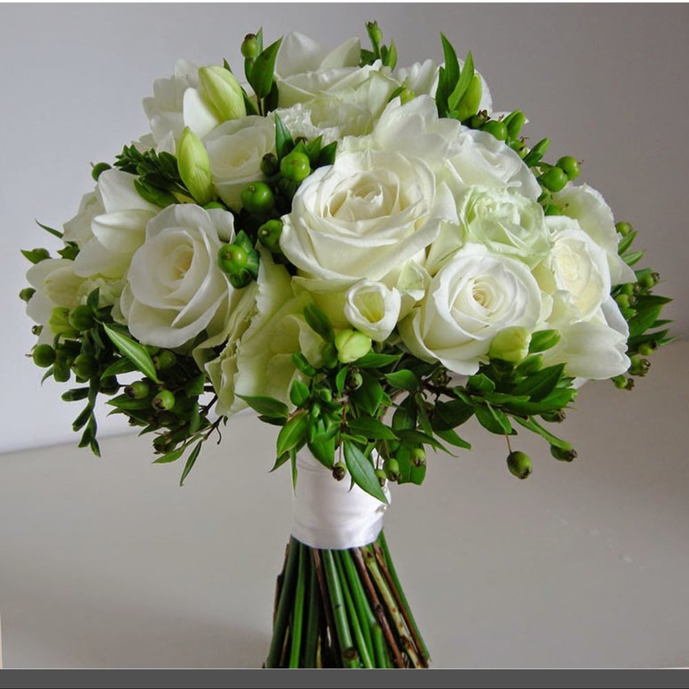 Букеты невесты из роз традиционно пользуются большой популярностью. Такой букет отличается изяществом и изысканностью и говорит о хорошем вкусе девушки, которая его выбирает. А фрезии символизируют молодость и доверие и являются символом серьёзных намерений и доверия к избраннице.