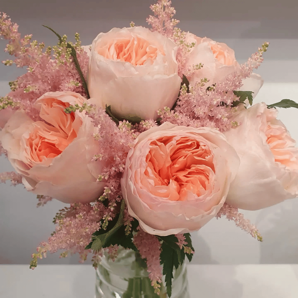 Шикарный букет невесты из крупной пионовидной розы "джульетта" с астильбой.