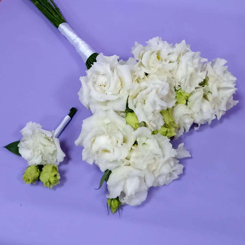 Букет невесты и бутоньерка из эустомы