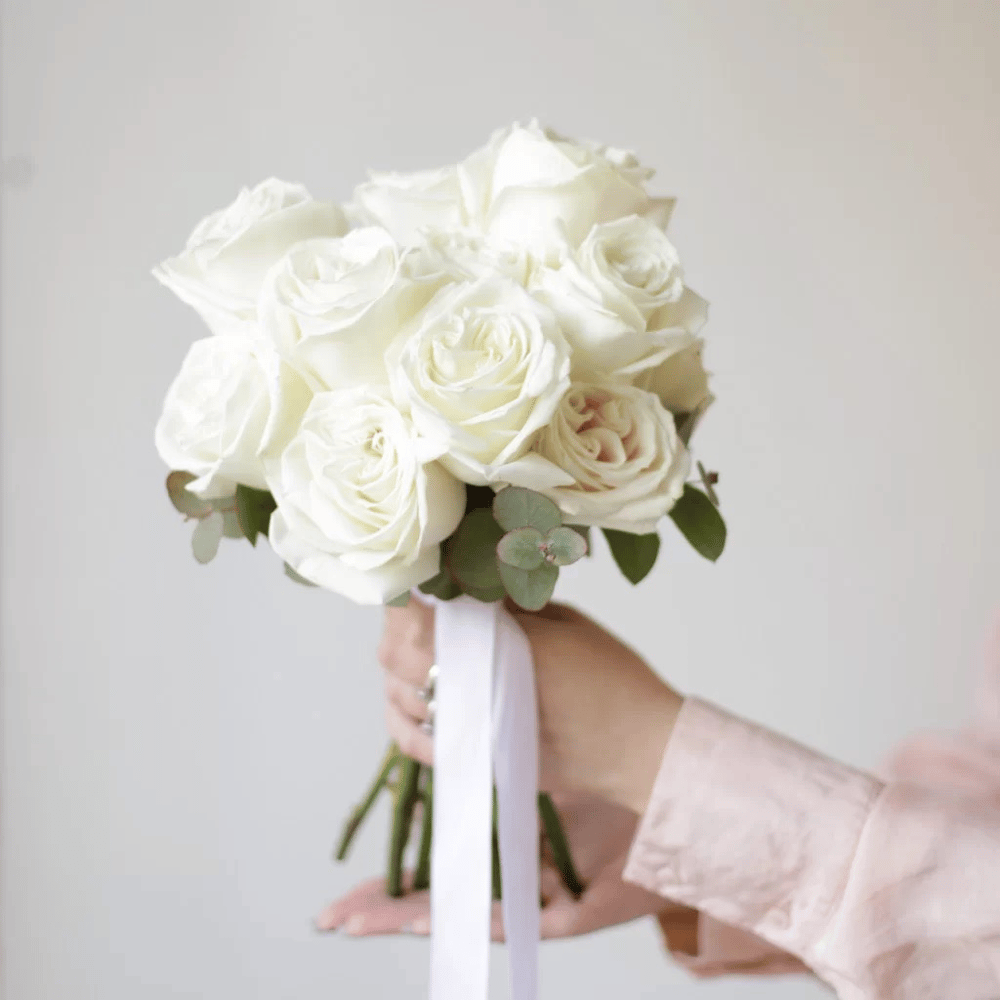Букет невесты из роз с эвкалиптом от Pink Flowers - это сочетание элегантности и свежести, которое станет незабываемым украшением вашего свадебного дня. Букет выполнен в классическом круглом стиле...