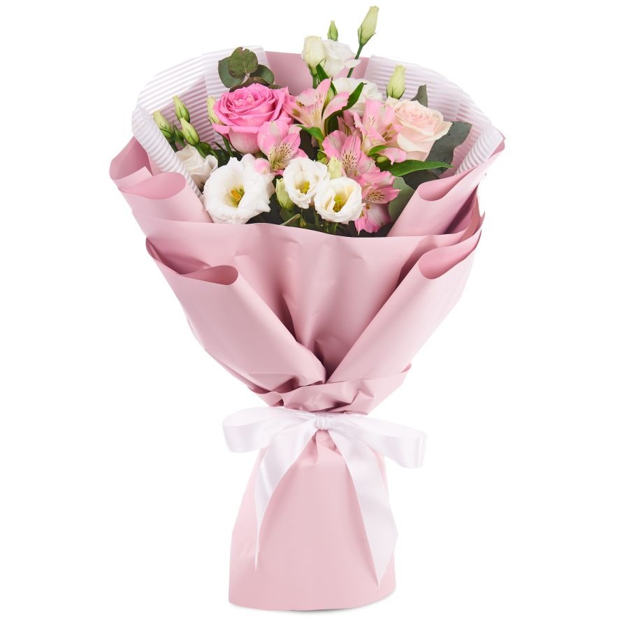 Букет "Нежное облако" небольшой из роз и эустом