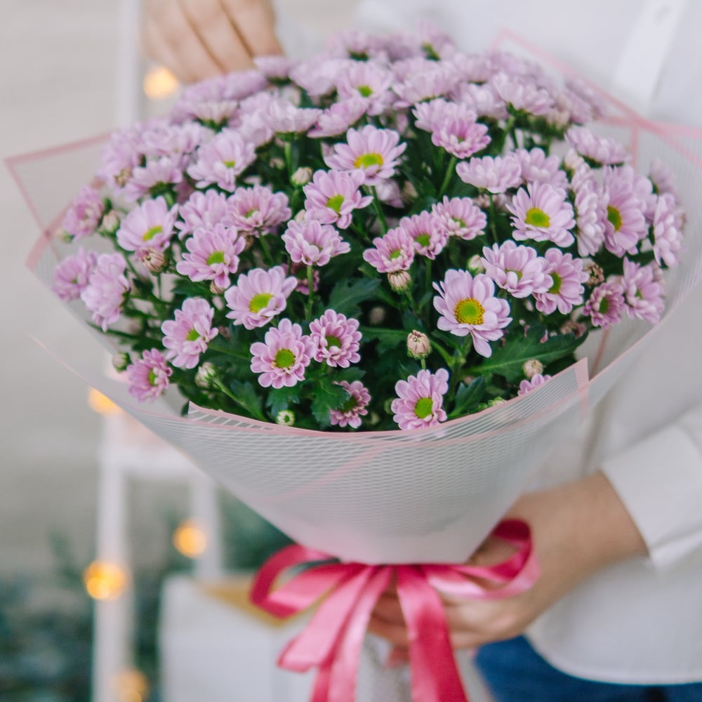 Нежный букет из 9 Хризантем Сантини в современной упаковке подарит своей обладательнице нежные эмоции.